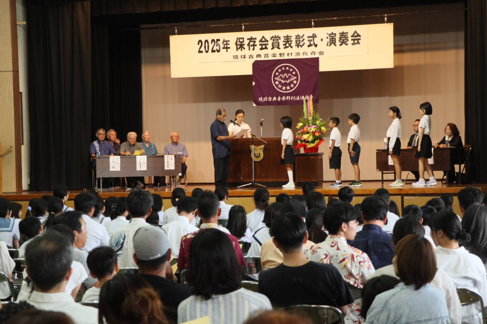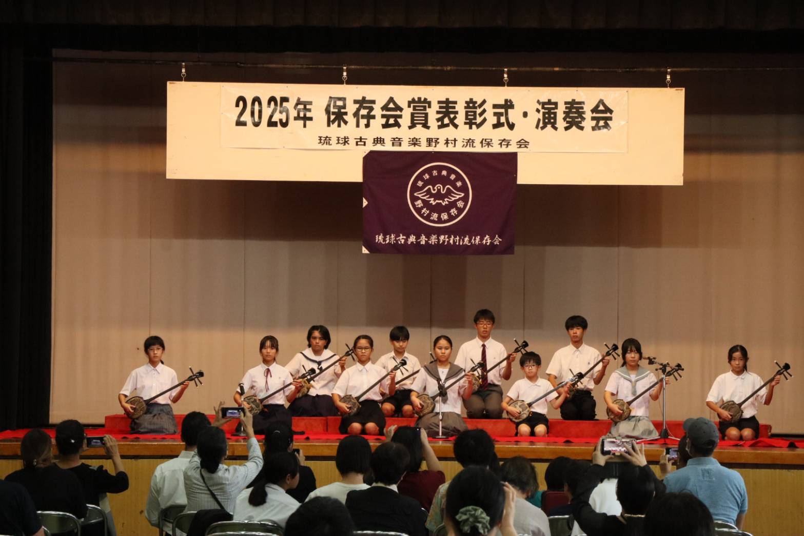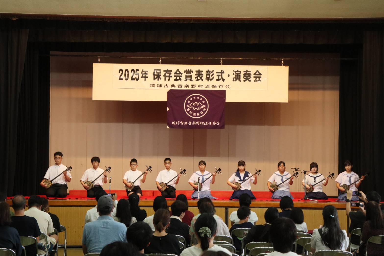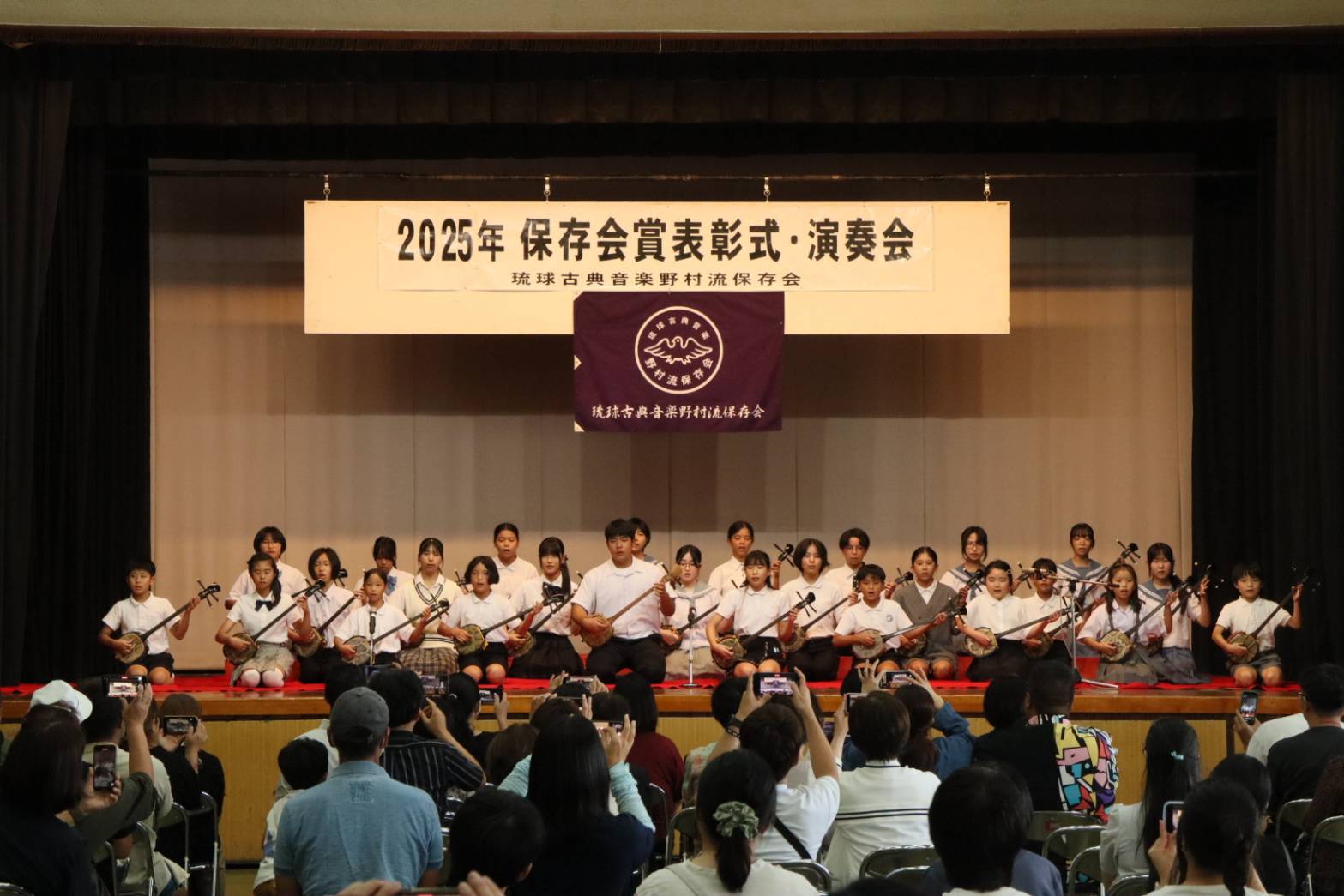 去る8月24日、西原町中央公民館ホールにて2025年度の保存会賞表彰式・演奏会が開催されました。保存会賞は青少年の健全育成と郷土芸能への愛着・理解を深めると同時に会員の資質向上を図り、正しい三線音楽の継承と沖縄における芸能文化の向上・発展に寄与することを目的に児童・生徒並びに大人を対象に2004年に創設されました。