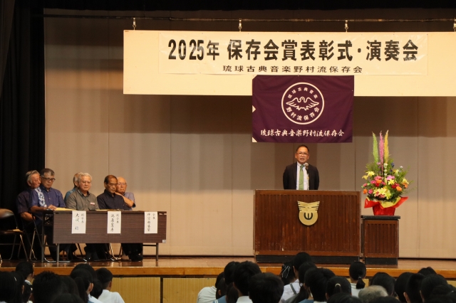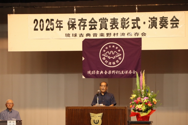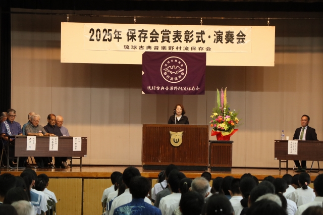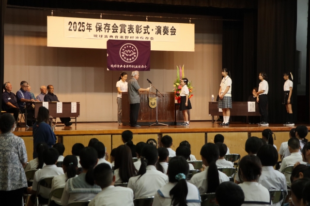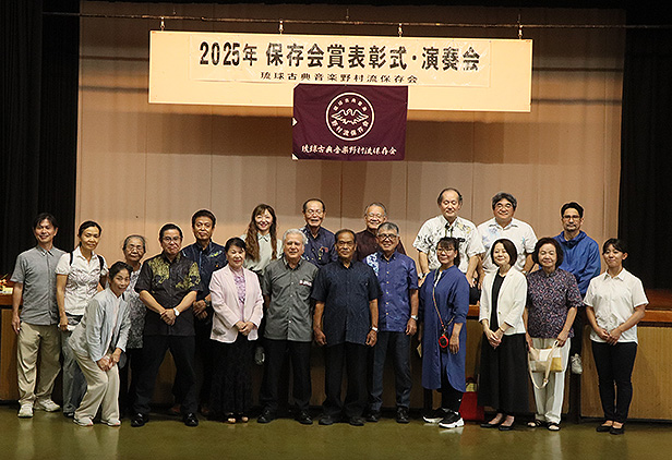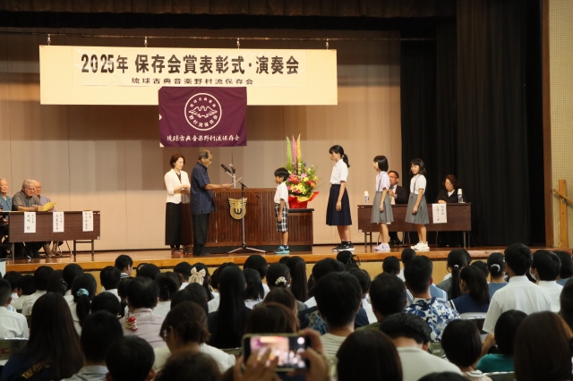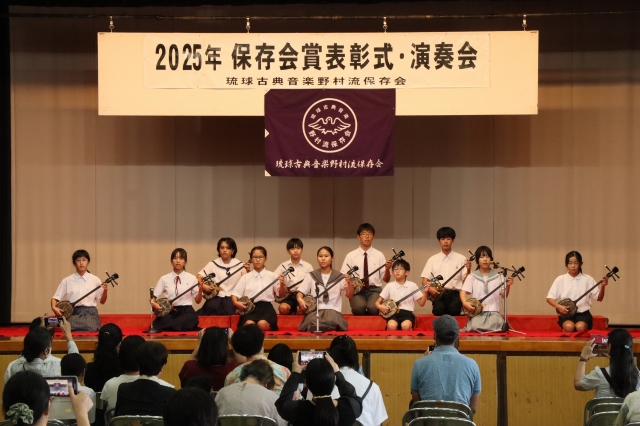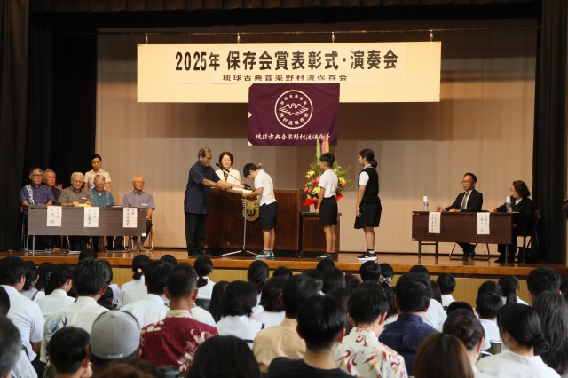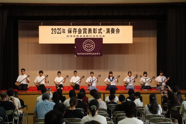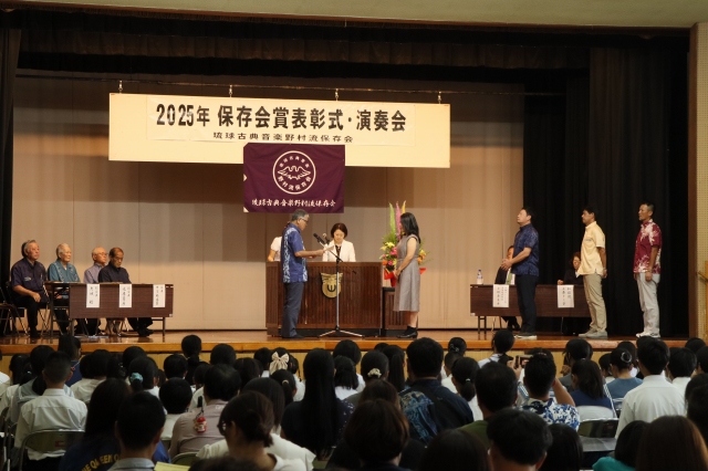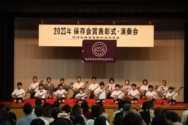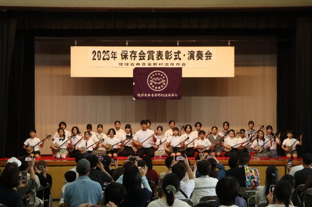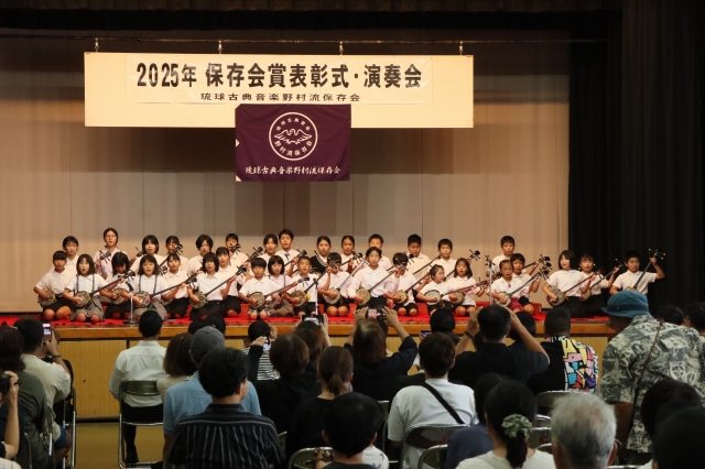 保存会賞は青少年の健全育成と郷土芸能への愛着および理解を深めると同時に、会員の資質向上を図り、正しい三線音楽の継承と沖縄における芸能文化の向上・発展に寄与することを目的に2004年に創設されました。2025年度は児童生徒136名、大人30名が合格し表彰されました。