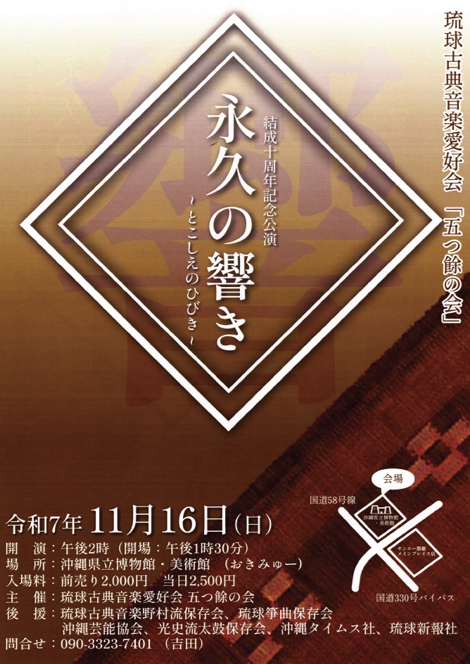 琉球古典音楽愛好会「五つ餘の会」結成十周年記念「永久の響き~とこしえのひびき~」[11月16日]のご案内