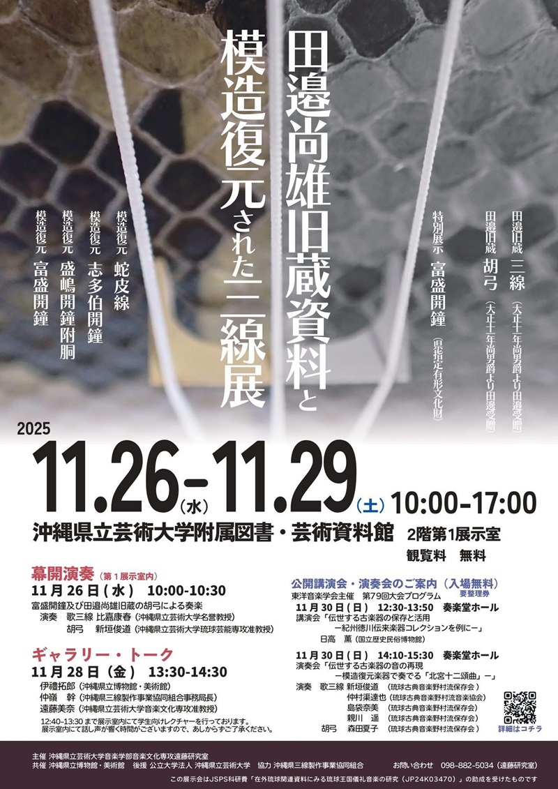 ★11月26日 特別演奏!県立芸術大学名誉教授比嘉康春先生 (「富盛開鐘」)と同准教授新垣俊道先生 (田邉旧蔵「胡弓」)による演奏あり